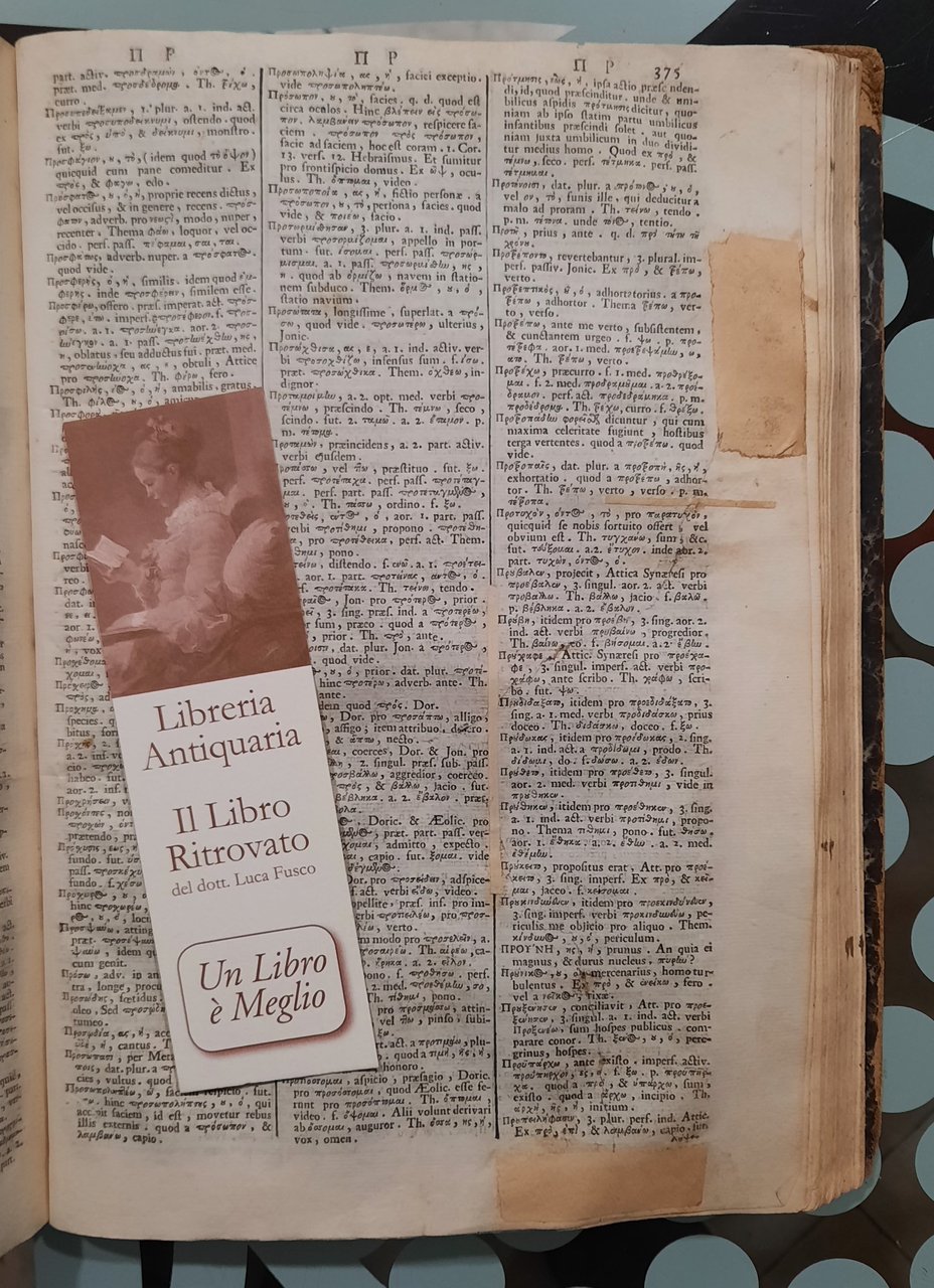 Patavii-typis Seminarii, 1715 apud Joannem Manfré in 4° pp. 560 con testatina e capilettera e finalino incisi. Testo in latino su due e tre colonne. Mende al margine inferiore alle pp. 61 e 411, antico restauro alla pag. 375. Alcune bruniture alle pagine. Bella marca tipografica color rosso al frontespizio. Leg. mz. pergamena coeva modesta con mancanza al dorso. Ottime condizioni generali.