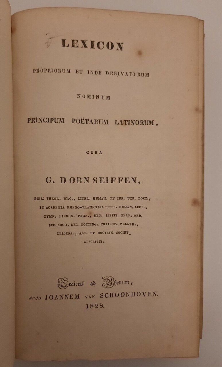 LEXICON NOMINUM PRICIPUM POETARUM LATINORUM DI G. DORNSEIFFEN SCHOONHOVEN 1828