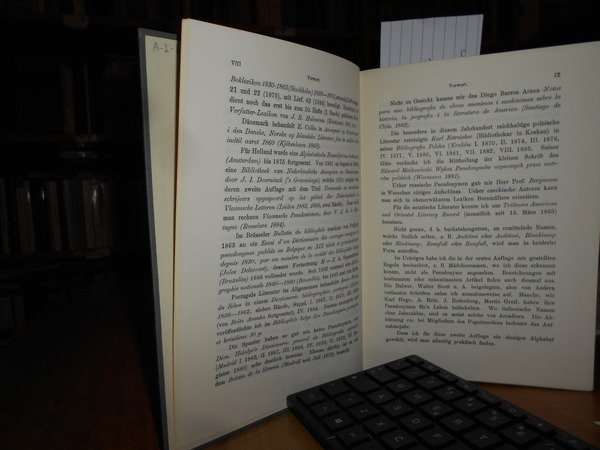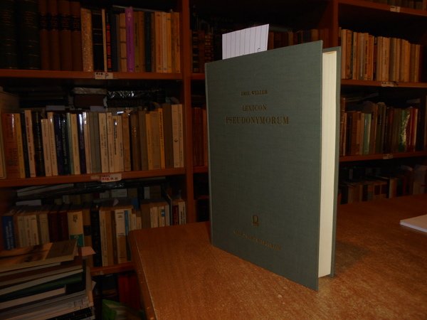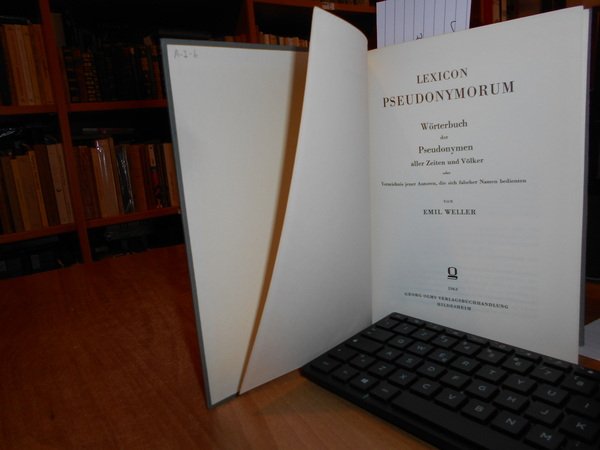 Emil Weller. Hildesheim, Georg Olms, 1963. Lexicon pseudonymorum. Wörterbuch der Pseudonymen aller Zeiten und Völker: oder, Verzeichniss jener Autoren, die sich falscher Namen bedienten. In-8°, tela edit. con titolo in oro sul piano e al dorso. x, 627 pp. Come nuovo. Uff. A - I - 6
