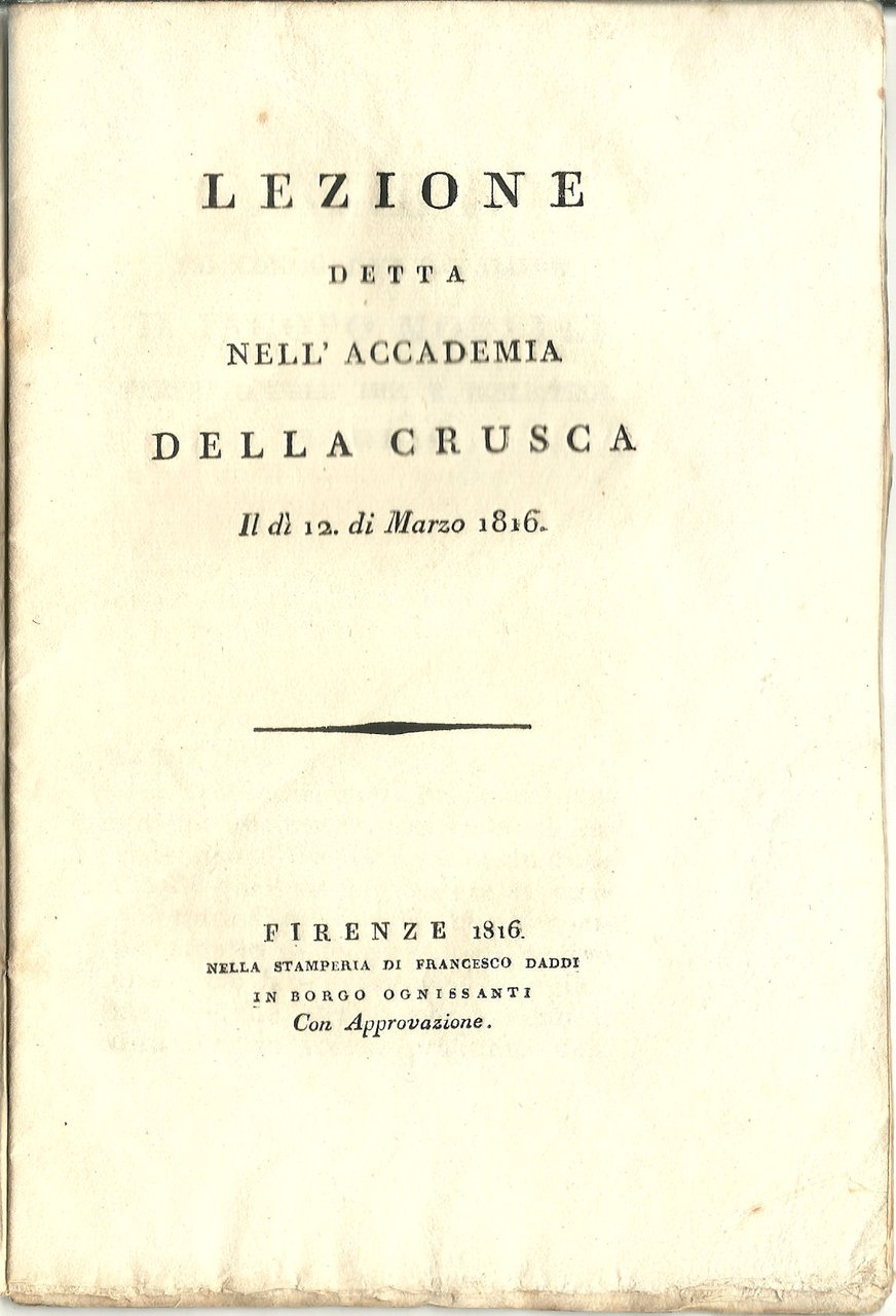 Lezione detta nell'Accademia della Crusca il dì 12 di Marzo 1816.
