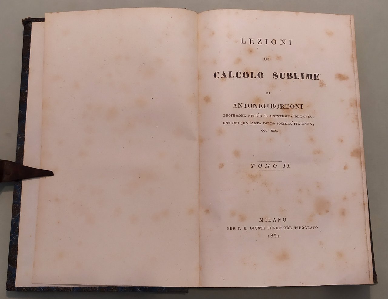 Milano, Giusti, 1831. Due volumi in 16mo; pp.XVI,424; 504. Alla fine del primo volume due tavole spieghevoli. Mezza tela coeva, titolo in oro ai dorsi. Fior.