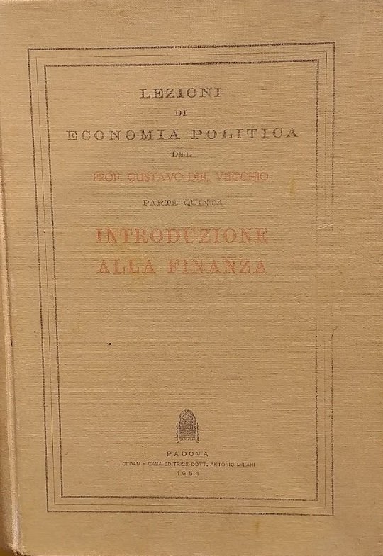 Lezioni di economia politica del prof. Gustavo Del Vecchio, parte quinta: Introduzione alla Finanza