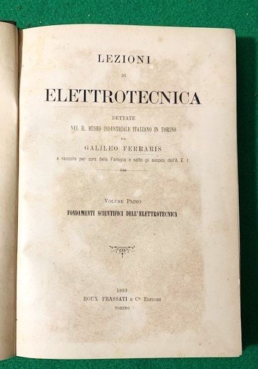 In 4°; IV, 432 pp. Legatura coeva in mezza-tela con titolo e autore impressi in oro al dorso. Filetti a secco al dorso. Piatti foderati con bella carta marmorizzata coeva. Seconda edizione, una prima edizione uscì l'anno precedente, del primo volume, unico pubblicato di quest'opera del celebre ingegnere italiano, considerato fra gli antesignani dell'elettronica contemporanea e scopritore del campo magnetico rotante e del motore elettrico in corrente alternata, Galileo Ferraris (Livorno Piemonte, 30 ottobre 1847 Torino, 7 febbraio 1897). Galileo Ferraris è stato un pioniere nel campo dell'ingegneria e dell'elettrotecnica, riconosciuto per le sue contribuzioni fondamentali allo sviluppo della tecnologia elettrica nel XIX secolo. Nato il 31 ottobre 1847 a Livorno Ferraris, in Italia, è stato uno dei più importanti scienziati della sua epoca, la cui eredità continua a influenzare l'ingegneria e l'elettronica moderne. Fin da giovane, Ferraris mostrò un grande interesse per la scienza e la tecnologia. Dopo aver frequentato l'Università di Torino, dove si laureò in Ingegneria, iniziò la sua carriera come professore di fisica. Tuttavia, fu il suo lavoro nell'elettrotecnica a renderlo famoso. Una delle sue maggiori innovazioni fu la scoperta del principio del campo rotante, che dimostrò essere fondamentale per lo sviluppo dei motori elettrici a corrente alternata (AC). Questa scoperta, avvenuta nel 1885, aprì la strada alla creazione di sistemi di distribuzione elettrica più efficienti e alla diffusione dell'energia elettrica su vasta scala. Nel corso della sua carriera, Ferraris fece anche importanti contributi alla teoria dei circuiti elettrici, alla trasmissione senza fili e all'elettrodinamica. La sua ricerca e il suo lavoro influenzarono direttamente molti altri scienziati e ingegneri del suo tempo, compreso Nikola Tesla, che sviluppò ulteriormente i concetti di Ferraris per i motori e i sistemi di distribuzione elettrica. Oltre alla sua attività scientifica, Ferraris fu anche un educatore stimato, insegnando all'Università di Torino e influenzando generazioni di ingegneri e scienziati. La sua passione per la ricerca e la sua dedizione all'avanzamento della conoscenza lo resero un mentore prezioso per molti studenti. La sua influenza nel mondo dell'ingegneria e dell'elettrotecnica si estese ben oltre i confini nazionali, e le sue scoperte furono accolte con grande interesse e ammirazione in tutto il mondo. Nel corso della sua vita, ricevette numerosi riconoscimenti e onorificenze per i suoi contributi scientifici, tra cui la nomina a membro della Royal Society di Londra nel 1896. Galileo Ferraris rimane una figura di grande rilievo nella storia dell'ingegneria elettrica, il cui lavoro ha gettato le basi per molte delle tecnologie che utilizziamo ancora oggi. La sua mente geniale e il suo impegno per l'avanzamento della scienza lo rendono un esempio ispiratore per le future generazioni di scienziati e ingegneri. Anche dopo la sua morte, avvenuta il 7 febbraio 1897 a Torino, il suo lascito continua a vivere attraverso le sue scoperte e il suo impatto duraturo sul mondo moderno. Esemplare in ottime condizioni di conservazione.