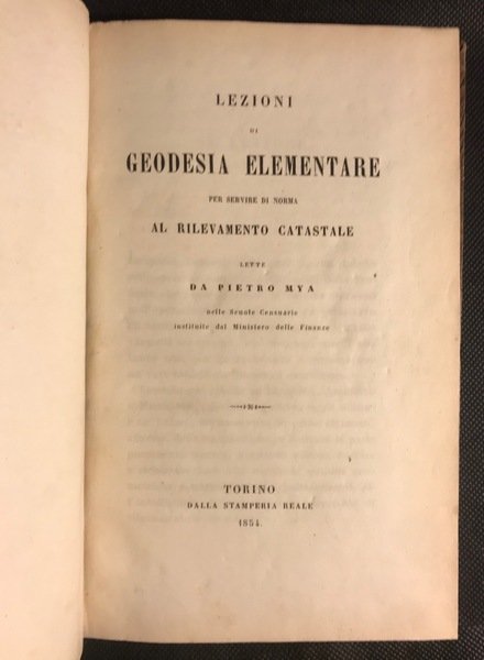 Lezioni di Geodesia Elementare per servire di norma al Rilevamento Catastale. Lette da Pietro Mya nelle Scuole Censuarie instituite dal Ministero delle Finanze.