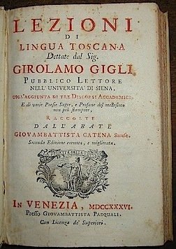 Lezioni di lingua toscana. coll’aggiunta di tre Discorsi Accademici e di varie Poesie Sagre, e Profane del medesimo non più stampate, raccolte dall’abate Giovanbattista Catena Sanese.