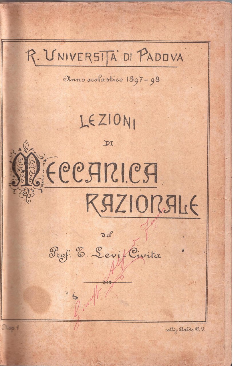Lezioni di meccanica razionale - Regia Università di Padova- Anno scolastico 1897-98