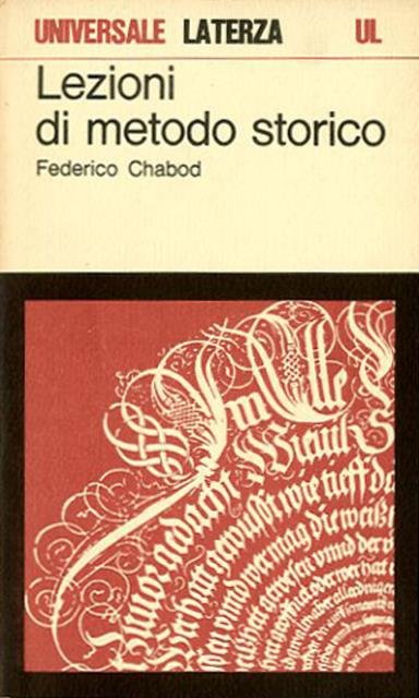 2. ed. VI, 341 p. ; 18 x 11 cm. Universale Laterza. Il testo, ricostruito da Luigi Firpo, è lo strumento didattico che Chabod ebbe carissimo negli ultimi vent'anni della sua attività di maestro degli studi di storia. Le lezioni, mentre costituiscono una preziosa testimonianza sull'uomo Chabod e sul suo modo di educare i giovani all'impegno critico rigoroso, rimangono ancora un insostituibile strumento di lavoro. Con saggi su Egidi, Croce, Meinecke; a cura di Luigi Firpo. Brossura editoriale, coperta in cartoncino flessibile illustrato a colori. Qualche segno del tempo al dorso coperta, interno in buono stato. Codice libreria 3992.