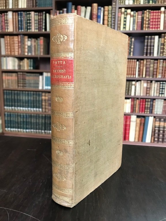 <span style="font-style: normal;">In-8° cm. (21), legatura coeva in percallina con titolo e fregi in oro al dorso; tagli spruzzati; pp. 508 [4] XVII [3] con 14 tavole illustrative in fine </span>incise in litografia da Ajello e Doyen di Torino (<i>specimen</i> di antichi documenti sabaudi e di sigilli ad essi apposti); qualche leggera fioritura<span style="font-style: normal;">. Edizione </span><i>pré-originale</i> dell'interessante lavoro di diplomatica, pressoché sconosciuta rispetto alla prima del 1834. Uno dei primi saggi italiani di paleografia secondo l'accezione metodologica moderna. Esemplare molto buono. (NH6)