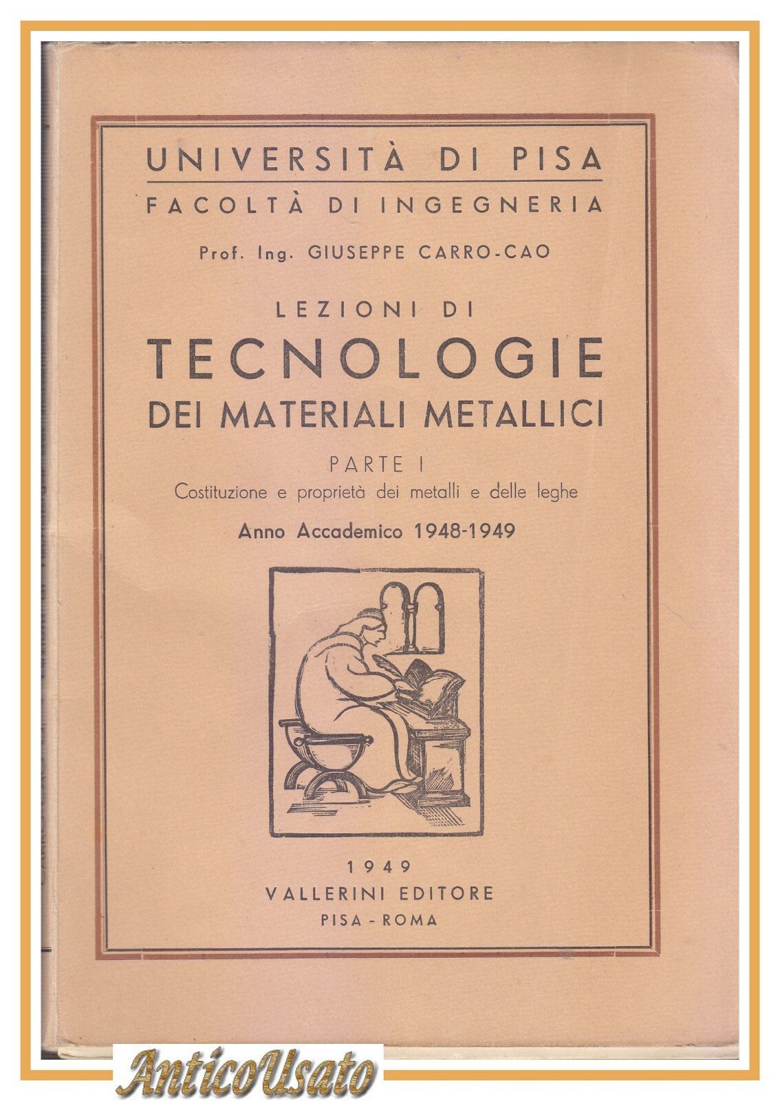 LEZIONI DI TECNOLOGIE DEI MATERIALI METALLICI parte I costituzione e proprietà dei metalli e delle leghe di Giuseppe Carro Cao.