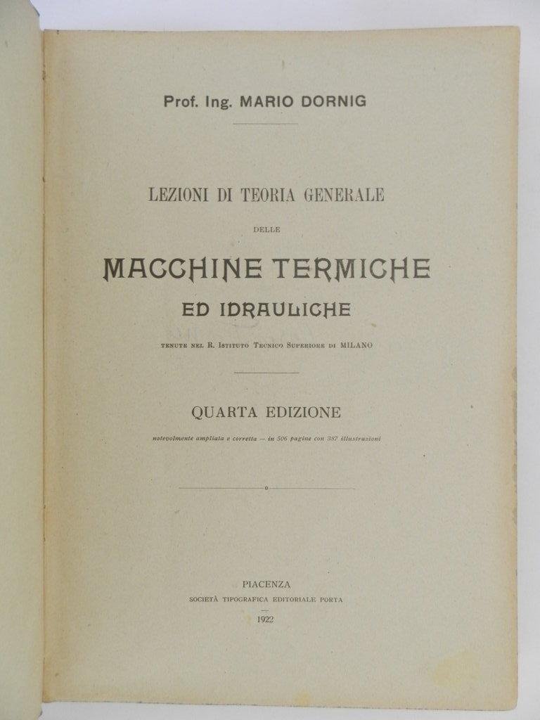 Lezioni di teoria generale delle macchine termiche ed idrauliche tenute nel R. Istituto Tecnico Superiore di Milano. Quarta edizione notevolmente ampliata e corretta