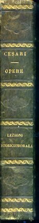 In-8°, pp. 760, legatura coeva m. pelle verde con titolo e decori in oro al dorso e piatti marmorizzati. Testo bicolonne. Sparsi aloni, lievi fioriture, ma buon esemplare. Opere morali e sacre del P. Antonio Cesari, I.
