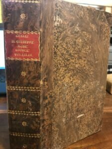 [vt] 3 volumi rilegati insieme: Il Giuseppe, Il Mosè, Il Giosuè. Tagli con spruzzi. Adesivo di biblioteca al frontespizio del volume I. Piccolo foro al margine delle sguardie posteriori, ordinari segni del tempo, molto buono nel complesso lo stato di conservazione del volume. Pagg. VII, 202;199;236. Mezza pelle con tit. e fregi oro al dorso. Mis mm