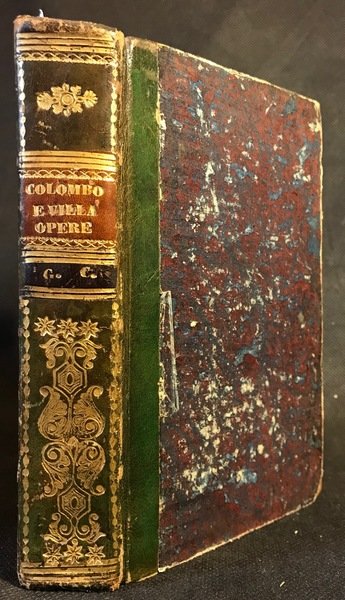 Due opere in un volume, legatura coeva in mezza pelle con titoli e ricchi fregi dorati sul dorso, tagli azzurri, in 12mo, cm11x18, pp 438 (2), 147; ritratto all'antiporta della prima opera. Michele Colombo (Ponte di Pietra, TV 1747 – Parma 1838), filologo e letterato, socio corrispondente della Crusca, compose a più riprese queste Lezioni in cui esalta l'uso della lingua semplice dei trecentisti, seppur riconoscendo la necessità di arricchirla, “senza guastarne la purità”, tenendo conto della lezione del Cinquecento e della modernità. Si segnala nella raccolta il divertimento scritto sotto pseudonimo burlesco BREVE RELAZIONE DELLA REPUBBLICA DE' CADMITI. GHIRIBIZZO DI AGNOLO PICCIONE illustrato da Agnolino suo figliuolo. (1826) in cui l'autore, relativamente alla diatriba fra romanticismo e classicismo, irride la sterilità delle polemiche dei critici e letterati (raffigurati come pigmei Cadmiti, discendenti di arpie e insetti, pronti alla menzogna, al furto e alla zuffa, portatori di occhiali a doppia lente che ingrandiscono le cose proprie e sminuiscono quelle altrui, e soggetti a “cacajuola” cronica che li porta ad “imbrattar molta carta”) - sull'argomento anche il più serio RAGIONAMENTO INTORNO ALLE DISCORDIE LETTERARIE D'OGGIDÌ (1827).