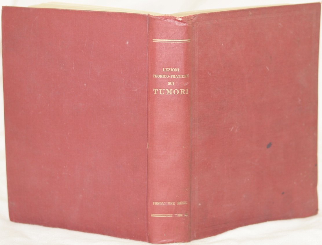 In 4. Dim. 27,5x19 cm. Pp. XIX+291+(5).Interessante opera del 1938, alcune lezioni teorico pratiche sui tumori edite dal "Regio Istituto per lo studio e la cura dei tumori". Tra gli argomenti trattati: Fondamenti scientifici per lo studio dei tumori, terapia generale dei tumori, Clinica diagnostica e terapia dei tumori dei singoli organi ecc. Il testo è impreziosito da numerose fotografie e illustrazioni in bianco e nero nel testo e 30 planches colorate fuori testo. In buone condizioni Copertina in tela editoriale in buone condizioni generali con lievi usure ai margini e dorso. (vedere foto). Legatura in discrete condizioni con qualche lieve rottura. All'interno le pagine si presentano in ottime condizioni con rare fioriture.Interesting work of 1938, some theorical practical lessons about cancer edited by "Regio Istituto per lo studio e la cura dei tumori". Between the issues treated: Scientiphic bases for the study of cancer, general therapy for cancer, diagnostic clinics and therapy of cancer of single organs ecc. The text is enriched by different black and white photoes and illustrations and 30 coloured out of text planches. In good conditions. Cloth editorial cover in good general conditions slightly worn in the edges and spine. (see the photo). Binding in fair conditions with some slight crack. Pages in very good conditions with occasional foxings.