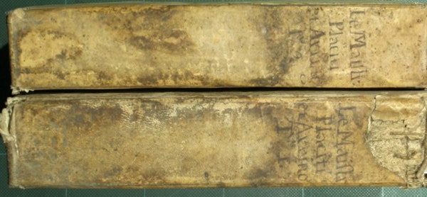 Per l'addietro avvocato nel Parlamento, e consigliere del Rè ne' suoi consiglj di Stato e privato - Pubblicati dal sig. Giovanni Issali, avvocato nel Parlamento. E trasportati nella favella Italiana. Aggiuntavi in questa edizione la vita dell'autore - in 8° - pp.10 cc. nn. + 616; 618-1259 - Pergamena - Due volumi - Testatine e finalini - Frontespizi in rosso e nero, testo su due colonne - Terzo volume mancante. Mancanze alle legature, tracce di tarlo alle prime pagine del I vol., fioriture e aloni sparsi - Testo a fronte in lingua francese