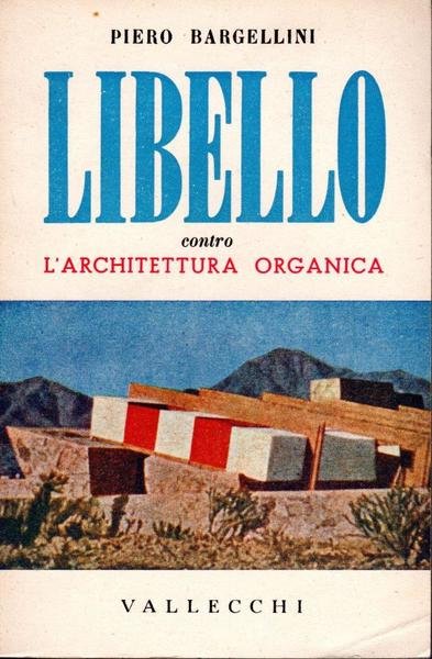 Libello contro l'architettura organica, prima edizione 1946, pp. 154, formato 13 x 19,5.<BR>Copertina morbida illustrata con titoli in nero, rosso e celeste al piatto anteriore e in nero sul dorso. <BR>Ottime condizioni. <BR>In questo volume l'autore polemizza contro gli eccessi dell'architettura organica, soprattutto contro Frank Lloyd Wright.