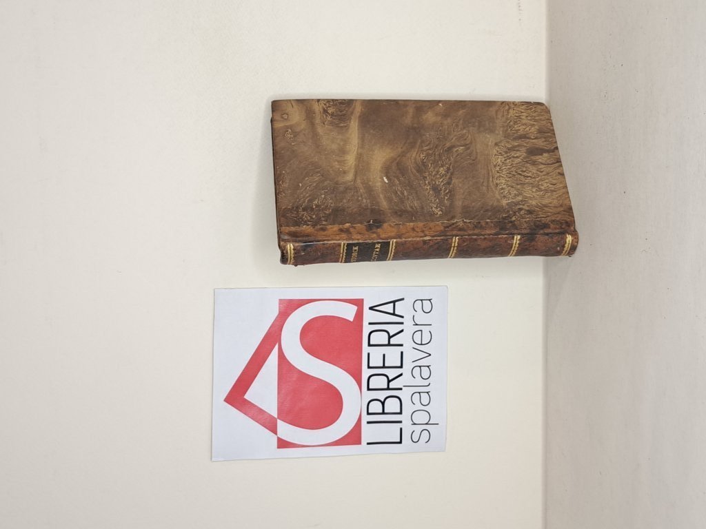 16°, cm 17, pp. (10), 180, (2), legatura in mezza pelle con titolo e fregi in oro al dorso. Pagine brunite, strappo con mancanza di testo a pagina 45-46. Esemplare nell'insieme ben conservato.