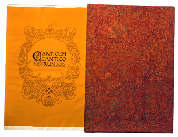 Liber Canticum Canticorum Salomonis, Donatello Bramanti flo. manuscript atque ornavit, Spartaco Giovene excudit, Mediolani, A. D. MCMXLIV.