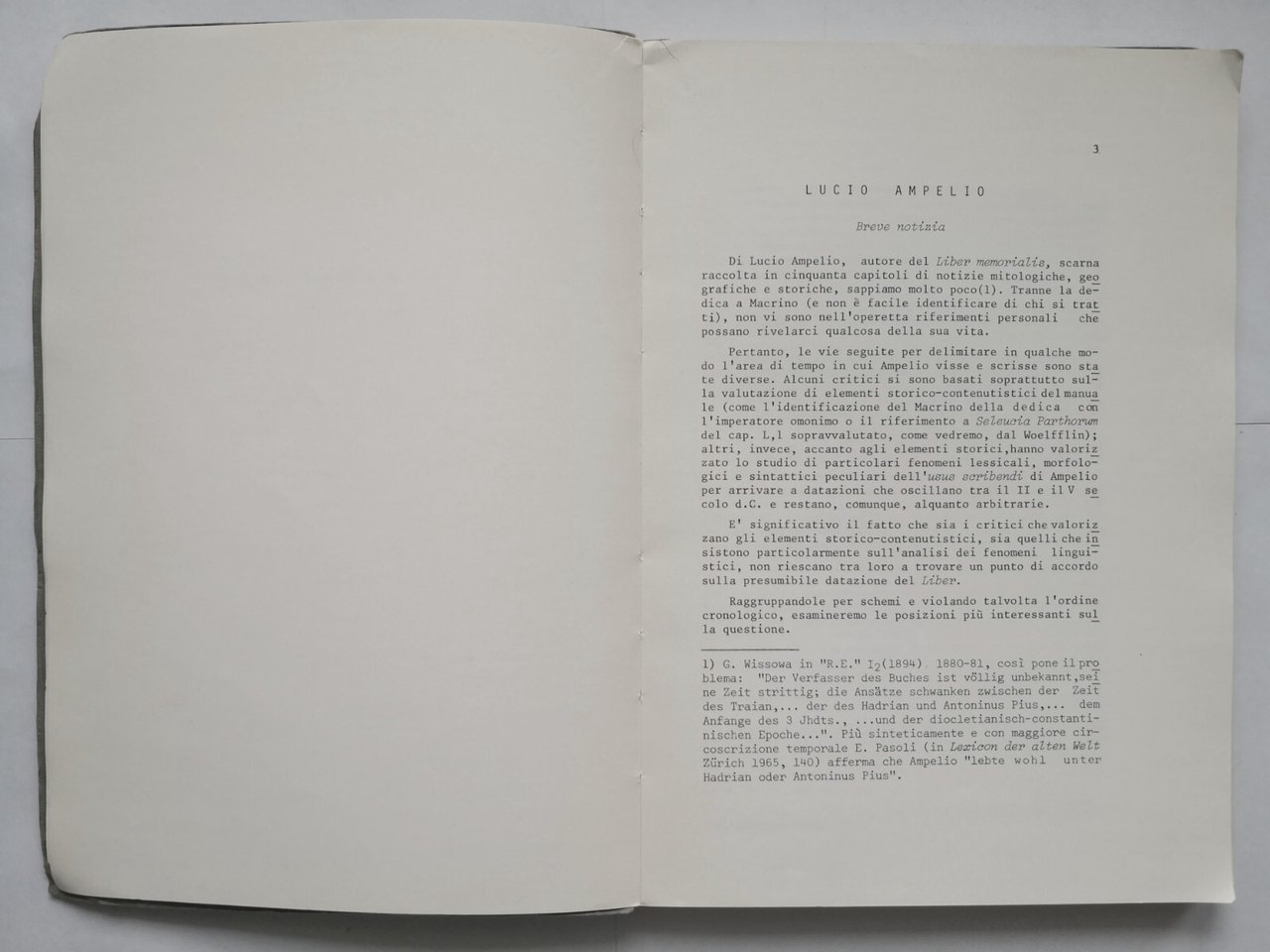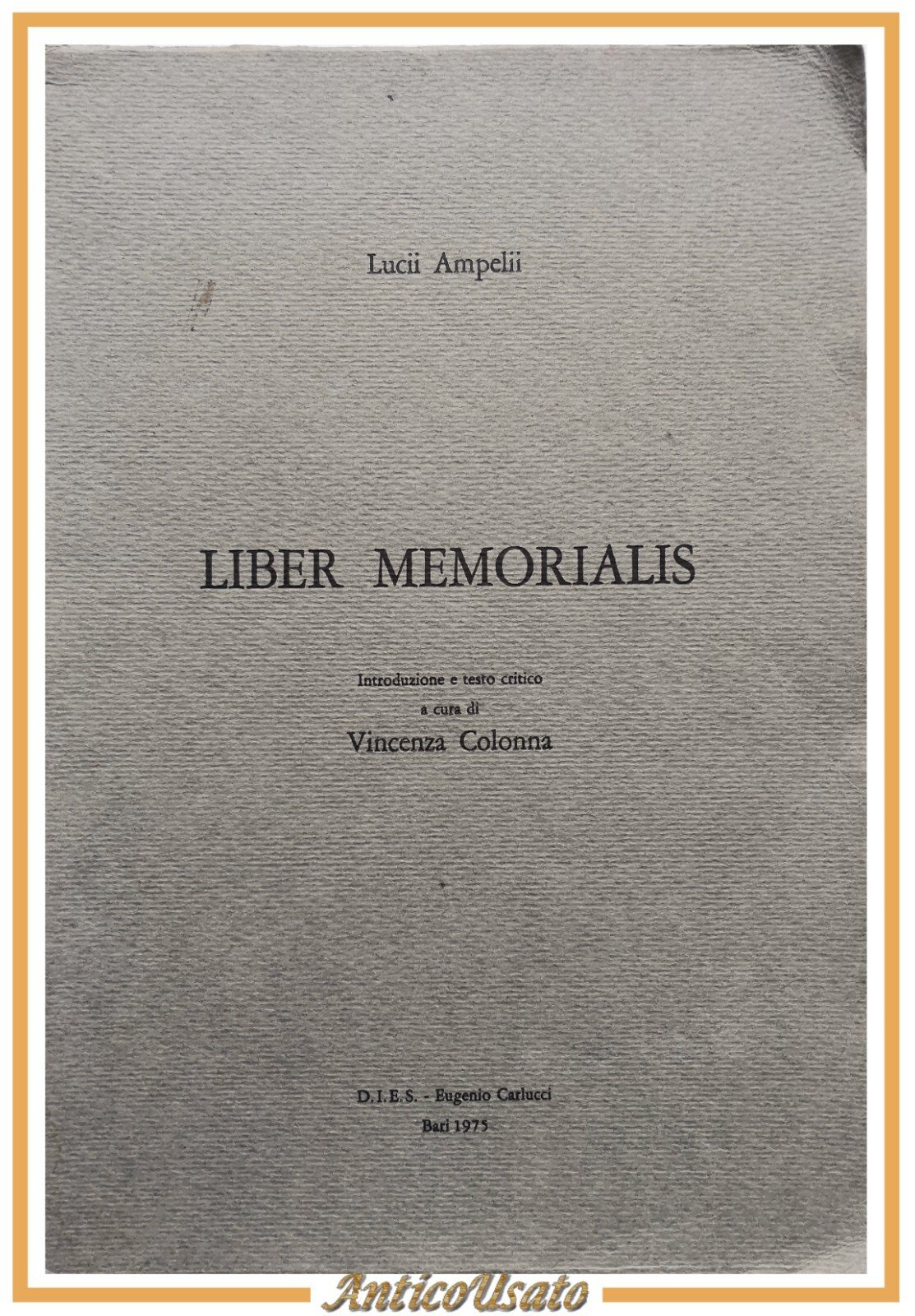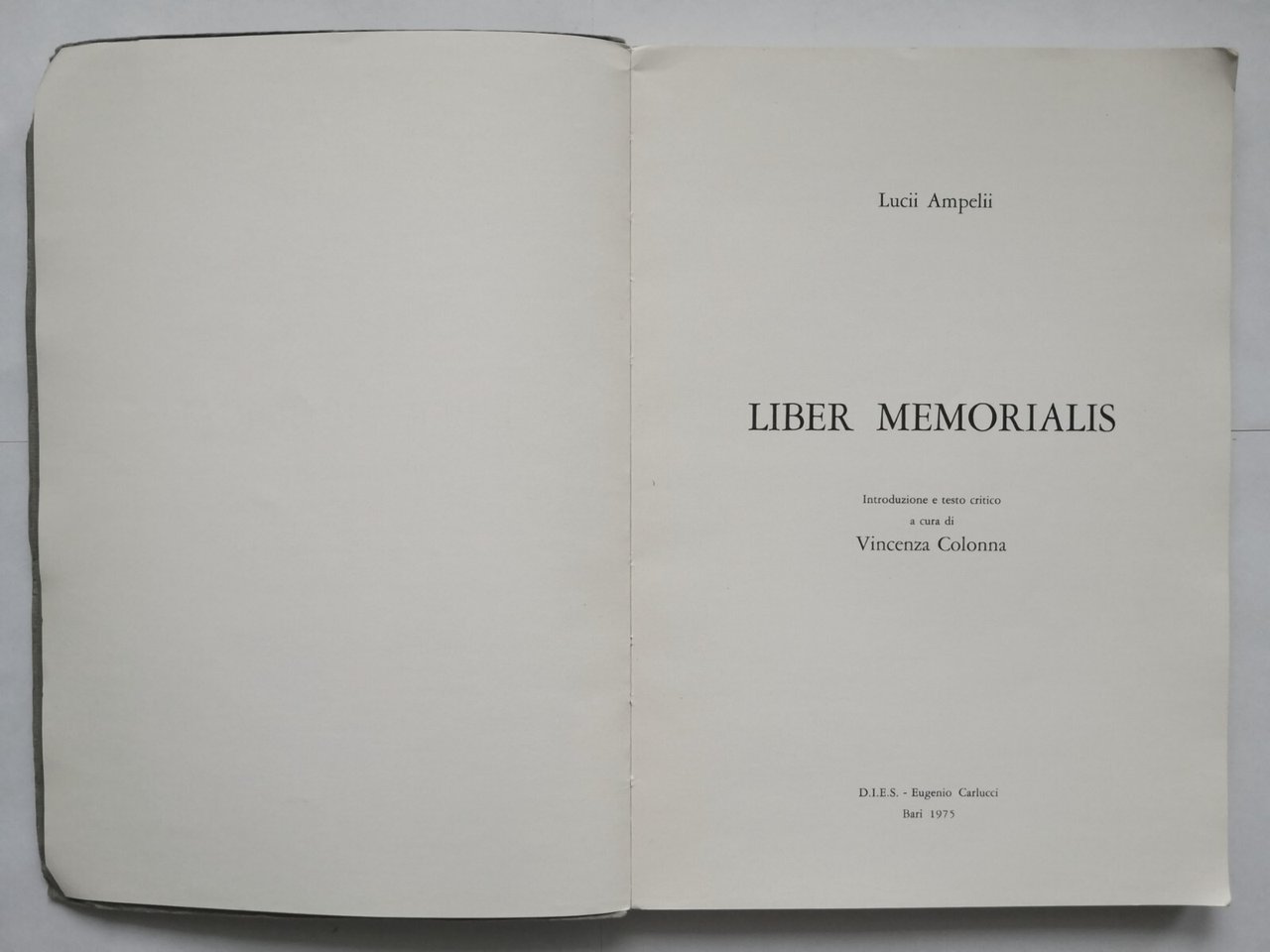 LIBER MEMORIALIS di Lucii Ampelii cura Vincenza Colonna 1975 DIES Carlucci Libro