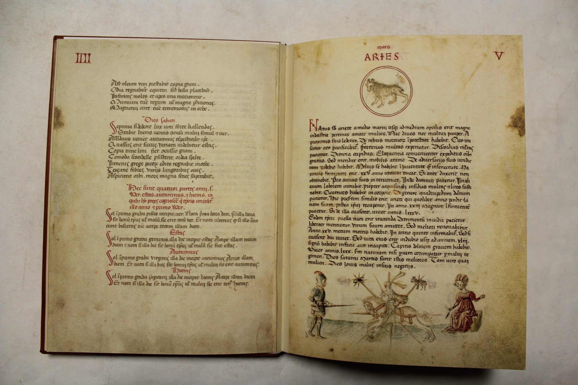 In 4° (mm 220 x 300). Due carte non numerate, con volvelle astrolabi, piani per la ricerca dell'oroscopo, poste all'inizio e alla fine del tomo, due fogli in carta pergamenata. Pagine LXXI numerate in rosso. Legatura in pelle di vitello con tavola cosmogonica impressa a secco al piatto anteriore, dorso a cinque nervi. Mancano il volume di commentario di 64 pagine e la scatola che racchiude i due volumi.<BR>Riproduzione in facsimile dell'originale conservato nella Biblioteca Estense Universitaria, Modena, Lat. 697 = ?.W.8.20. Testo latino in gotico rotondo.<BR>Il "Liber Physiognomiae" (1440 ca) è una miscellanea di trattati medico-astrologici medievali, rivisitati in età umanistica. Autore dei testi, miniatore e committente rimangono ancora ignoti. Alle descrizioni sui giorni e sulle stagioni seguono i dodici segni dello zodiaco, raffigurati uno per pagina assieme al testo degli oroscopi, che delineano il carattere e gli eventi positivi e negativi dell'uomo e della donna in relazione al periodo di nascita; i disegni acquarellati del fondo pagina rappresentano gli influssi dei pianeti sul genere umano. Le parti centrale e finale del codice comprendono tavole genealogiche, interpretazioni astrologiche del sogno biblico del profeta Daniele e i suggerimenti medici di Pietro d'Abano, le cui lezioni nel primo Trecento all'Università di Padova si rivelano come le fonti dirette o ispiratrici del "Liber". Le dodici tavole con i disegni acquarellati sono opera di un miniatore di area pisanelliana. Prevale l'attribuzione a un artista patavino (anche per i diretti riferimenti agli affreschi del Guariento agli Eremitani), tuttavia recenti ipotesi, non comprovate ma suggestive e forse verosimili, propongono una possibile committenza per il marchese Leonello d'Este.<BR>L'edizione in facsimile del "Liber Physiognomiae" è stata realizzata in concomitanza con il restauro e con la dotazione della nuova copertina in pelle. L'opera è stampata su carta "Accademia" Fabriano, che richiama il supporto dell'originale. I due fogli membranacei sono riproposti su carta pergamenata. La cucitura e la legatura in pelle di vitello con impressioni a secco sono opera di provetti artigiani della legatoria Bergamasca. Nostro esemplare N° 592 su una tiratura di 999 esemplari, di cui i primi numerati in numerazione romana da I a XIX, riservati al direttore e alla biblioteca.<BR>La tiratura è di 999 esemplari numerati e certificati. Ottimo esemplare, stato di nuovo.<BR>