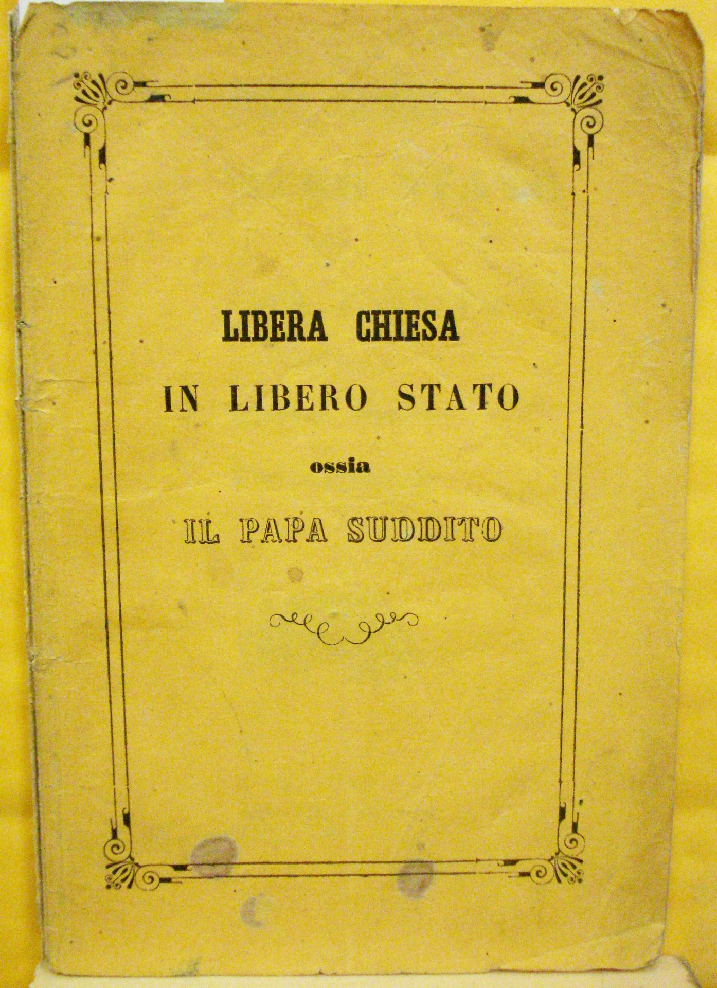 LIBERA CHIESA IN LIBERO STATO OSSIA IL PAPA SUDDITO: RIFLESSIONI STORICHE.