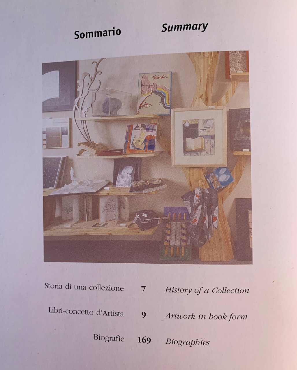 I ed.. Catalogo della mostra organizzata in occasione della Fiera del Libro di Torino presso il Palazzo Bricherasio di Torino dal 18 maggio al 21 maggio 2001. Testi in italiano/inglese. Traduzione/ Translation: Pedro Nelson, Paola Pizzorni. In-8 quasi quadro/ 176/ brossura in cartoncino bianco satinato e patinato con grafica in nero lucido su nero satinato e bianco e con ampi risvolti. Illustrazioni a colori e in b/n nel testo e f.t.. Coordinamento artistico e progetto/ Artistic Coordination and Project: Maurizio Rasca - RG&C. Fotografie/ Photographs: Eddy Buttarelli. Fotografie e controllo digitale delle immagini/ Photographs and digital control of the images: Filippo Gallino. Stato buono. Sommario/ Summary: Storia di una collezione/ History of a Collection - Libri-concetto d'Artista/ Artwork in book form - Biografie/ Biographies.