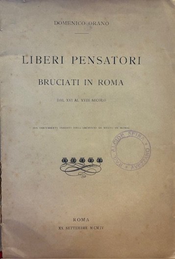 Liberi pensatori bruciati in Roma dal XVI al XVIII Secolo (da documenti inediti dell’Archivio di Stato in Roma)