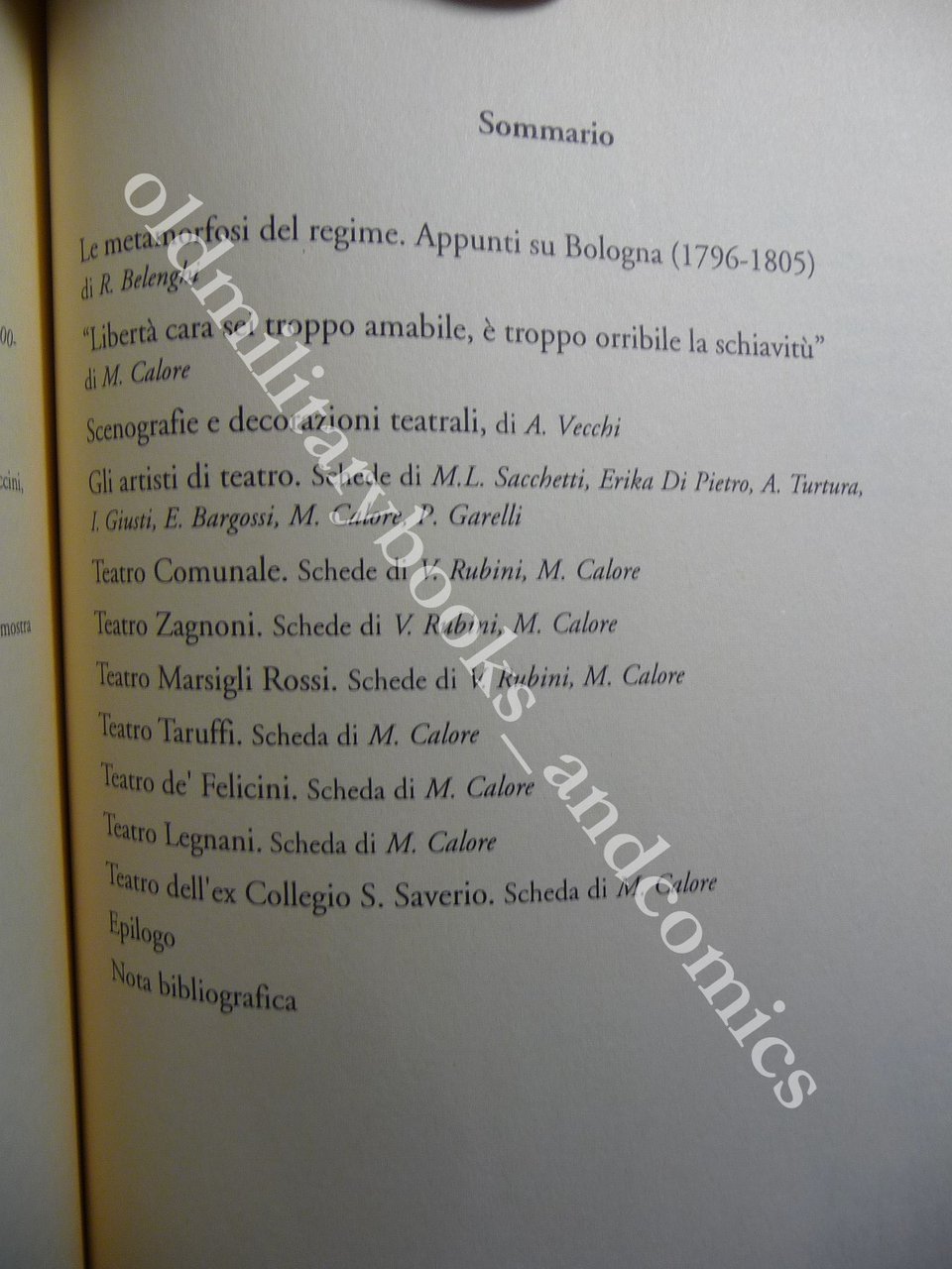 Il libro descrive l'attivita' teatrale bolognese negli anni che segnarono il passaggio dall'antico al nuovo regime.