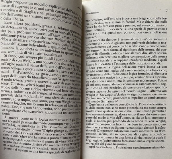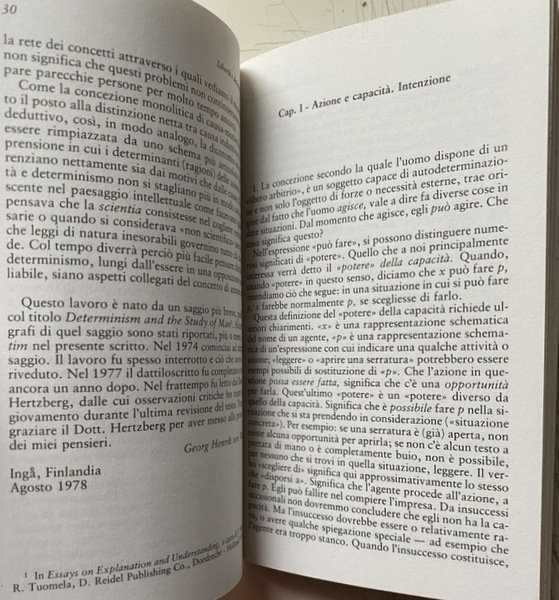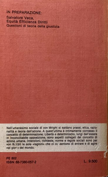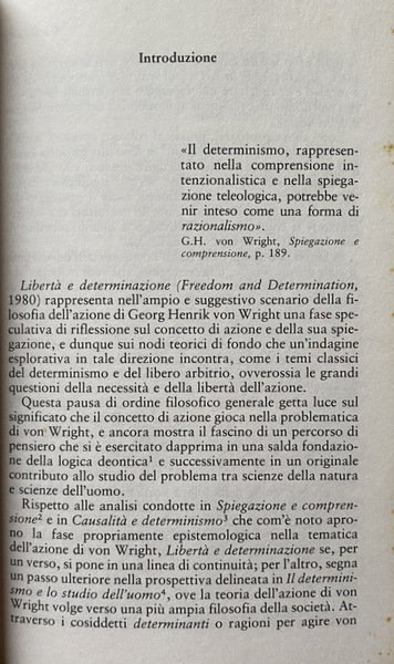 Soggetti: Filosofia, Etica, Morale, Libri universitari, Umanistica, Azione, Obbligo, Intenzionalità, Relazioni concettuali, Necessità, Speculazione filosofica, Intenzione, Decisione, Libero arbitrio, Scelta, Volontà, Edonismo, Psicologia, Ruoli, Libertà, Determinismo, Umanesimo sociale, Epistemologia, Teorie filosofiche, Fini, Mezzi, Ragione, Razionalità, Comportamento, Attitudini, Norma, Fallimento, Filosofi finlandesi, Ludwig Wittgenstein, Circolo di Vienna, Spiegazione, Comprensione, Explanation and Understanding of Action, Ability, Intention, Asymmetry, Abilities to do, Omit, Intentionality, Agent, Study of Man, Humanismen som livshållning, Humanism as an approach to Life, Logical Studies, Logiikka ja humanismi, Filosofisia tutkielmia, Philosophical Dissertations, Teoria generale della modalità, Logica modale, An Essay in Modal Logic, Deontica, Norme, Sistemi normativi, Deontic Logic, Diritto, Concetti fondamentali, Induzione, Probabilità, The Logical Problem of Induction, A Treatise on Induction and Probability, The Varieties of Goodness, Norma e azione, Spiegazione e comprensione, Causalità e determinismo, Of Human Freedom, Mente-corpo, An Essay on Door-Knocking, Chiarificazione concettuale, Pensiero, Ragionamento, Prassi, Conoscenza, Realtà, Uomo, Natura, Evento, Nesso concettuale, Relazione causale, Atti, Dilthey, Dualismo, Necessario, Verificato, Obbligatorio, Tutti, Possibile, Permesso, Alcuni, Contingente, Non deciso, Impossibile, Falsificato, Vietato, Nessuno, Saggistica, Collezionismo, Riferimento, Libri rari Vintage Fuori Catalogo, Weltbild, Hegel, Marx, Neowittgensteinianesimo, Esperienza, istituzioni, Affare scoiale, Gilbert Ryle, Linguaggio, Abitudini, Uso, Apprendimento, Tecnologia, Dialettica, Agenti, Significato, Pratica, Comunità di vita, Elisabeth Anscombe, Esecuzione, Risultato, Charles Taylor, Sillogismi, Pressione normativa, Complessità, Motivazione, Potere, Obbligo, Limitazione, Philosophy, Ethics, Morals, University books, Humanities, Action, Obligation, Intentionality, Conceptual relations, Necessity, Philosophical speculation, Intention, Decision, Free will, Choice, Will, Hedonism, Psychology, Roles, Freedom, Determinism, Social humanism, Epistemology, Philosophical Theories, Ends, Means, Reason, Rationality, Behavior, Attitudes, Norm, Failure, Finnish Philosophers, Vienna Circle, Explanation, Understanding, General Theory of Modality, Norms, Normative Systems, Law, Fundamental Concepts, Induction, Probability, Norm and action, Explanation and understanding, Causality and determinism, Mind-body, Conceptual clarification, Thinking, Reasoning, Practice, Knowledge, Reality, Man, Nature, Event, Conceptual nexus, Causal relationship, Acts, Dualism, Necessary, Verified, Compulsory, All, Possible, Allowed, Some, Contingent, Undecided, Impossible, Falsified, Prohibited, None, Nonfiction, Collectables, Reference, Out of print Rares Books, Experience, institutions, School affair, Language, Habits, Use, Learning, Technology, Dialectic, Agents, Meaning, Practice, Community of life, Execution, Result, Syllogisms, Normative pressure, Complexity, Motivation, Power, Obligation, Limitation