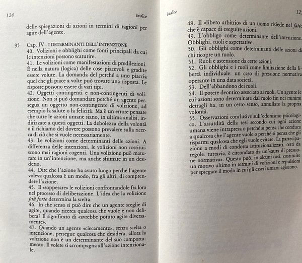 43. Le volizioni come determinanti delle azioni. A differenza dalle intenzioni, le volizioni non costituiscono mai ragioni cogenti. Una volizione può maturare in intenzione, ma anche sfumare in desiderio.