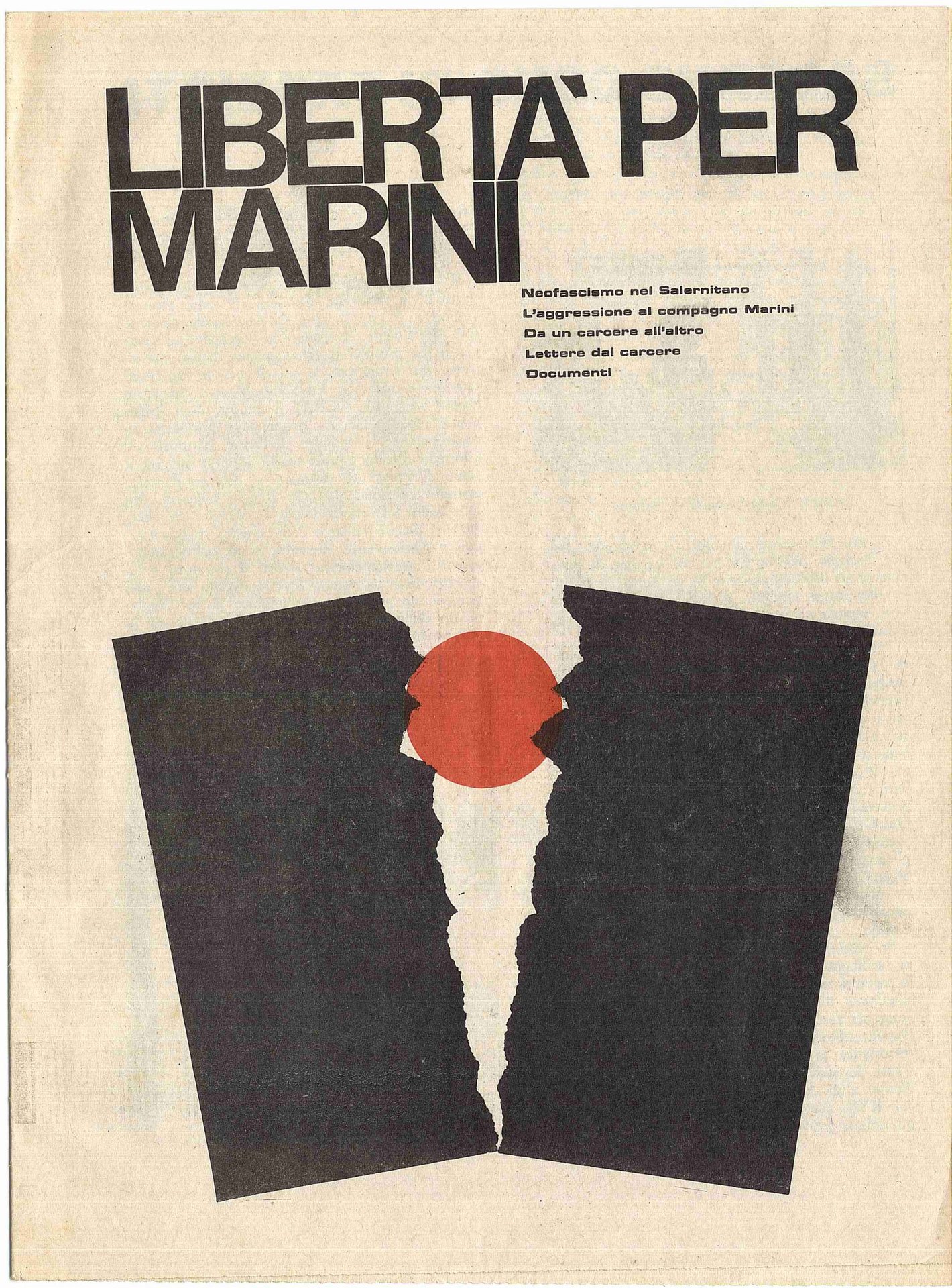Libertà per Marini. Neofascismo nel Salernitano. L'aggressione al compagno Marini. Da un carcere all'altro. Lettere dal carcere. Documenti