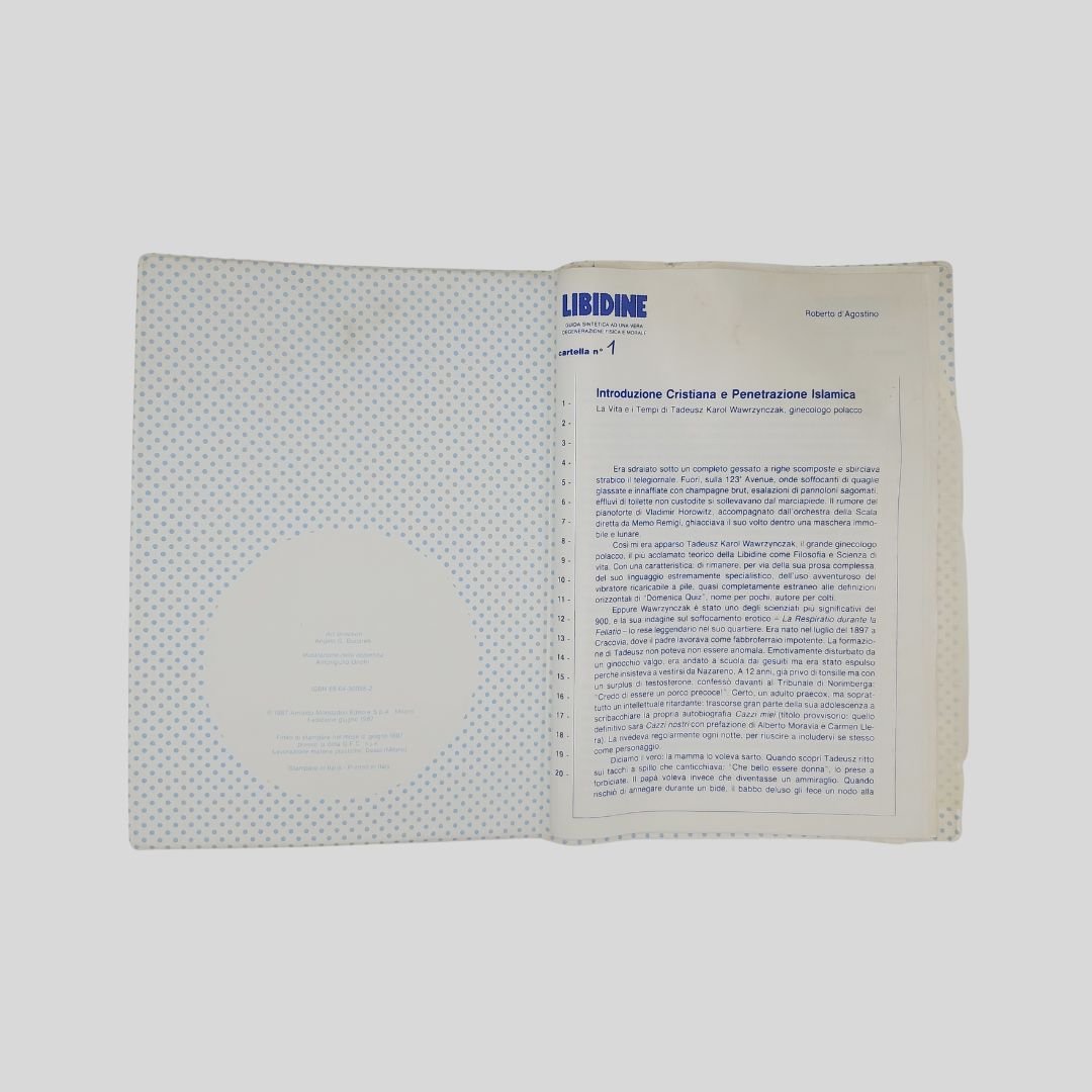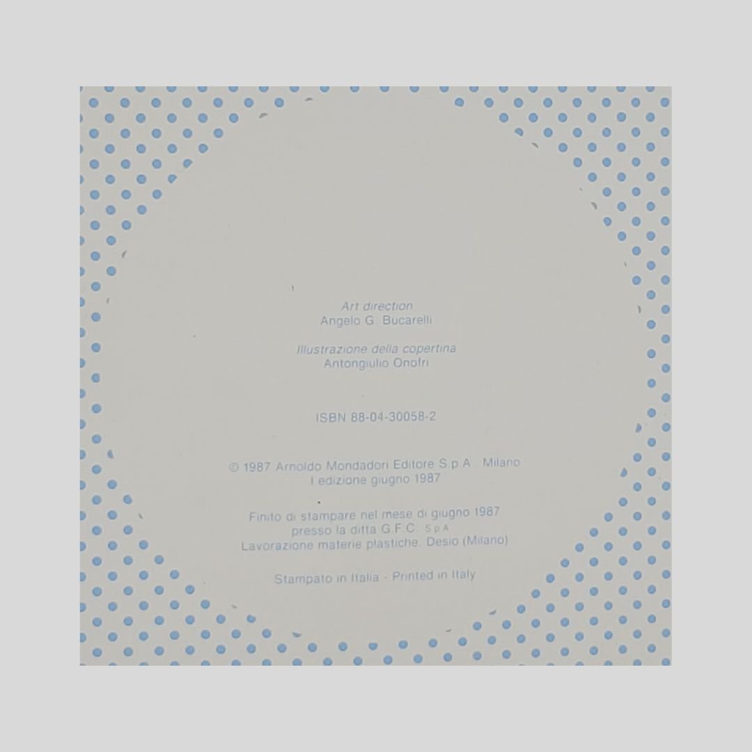 In 8° (cm 28×20), pp. 20 nn., fogli in pvc, protetti da velina, con una tav. a p. pagina. Grafica di copertina di Antongiulio Onofri. Il libro reca due valvole alle copertine gonfiabili, è interamente in PVC con testo stampato in blu. Collana: BUM, Biblioteca umoristica Mondadori. Insignificanti tracce d’uso alla copertina. Manca la fascetta (di plastica a forma di reggiseno). Prima e rara edizione.