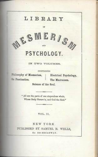 Library of Mesmerism and Psychology, in two volumes comprising: The Macrocosm and Microcosm or the universe without and the universe within. On Fascination or the philosophy of charming. Library of mesmerism and psychology. Six lectures on the philosophy of Mesmerism; 4 opere in 1 vol.