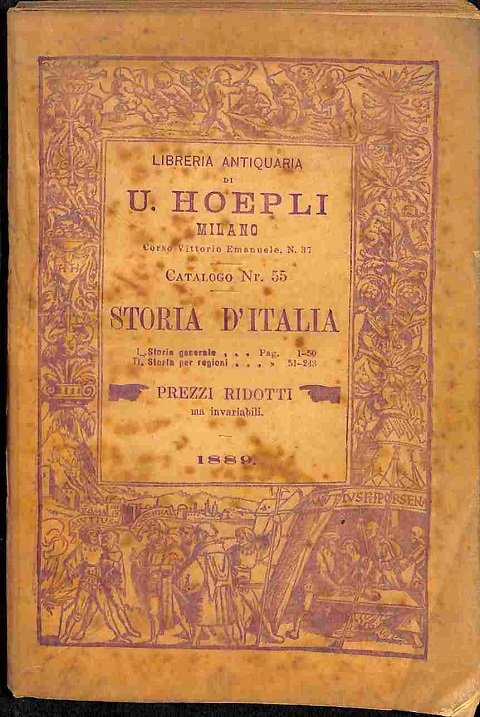 Libreria antiquaria di U. Hoepli. Milano.Catalogo Nr. 55. Storia d'Italia. 1889