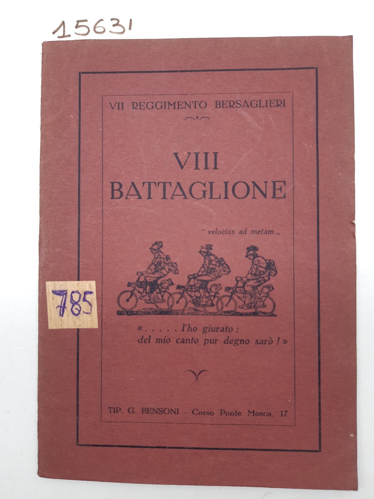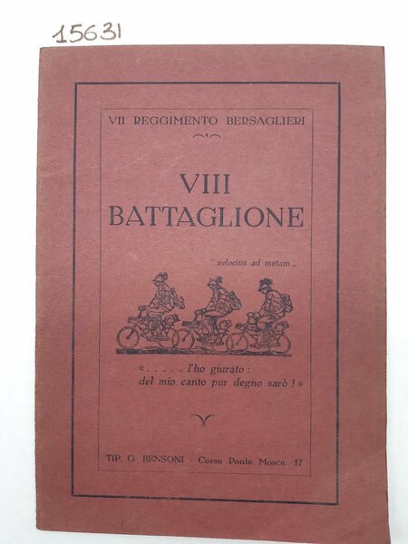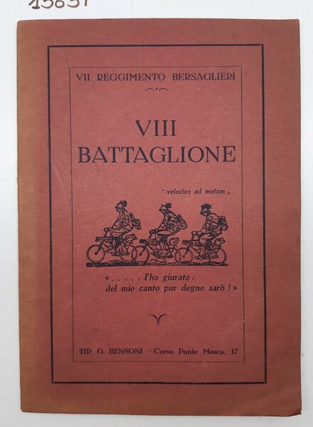 Libretto canti bersaglieri ciclisti VII Reggimento bersaglieri VIII Battaglione Bensoni senza data