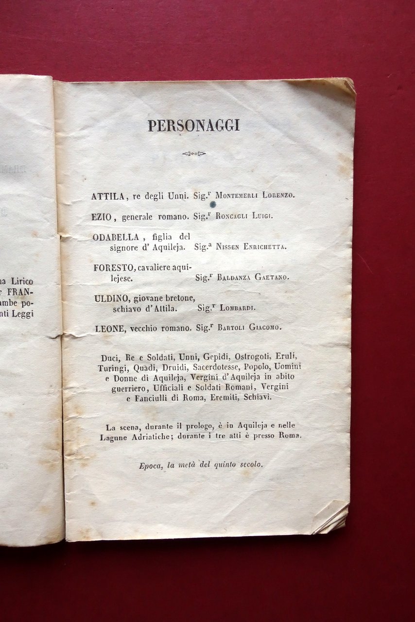 Libretto d'Opera Attila G. Verdi T. Solera Teatro Comunale di Bologna 1846