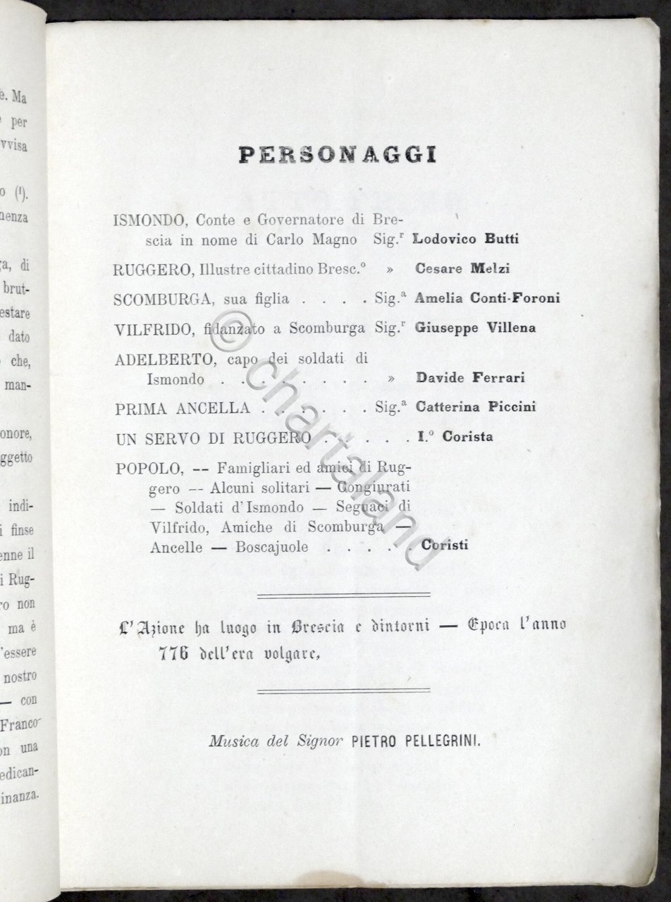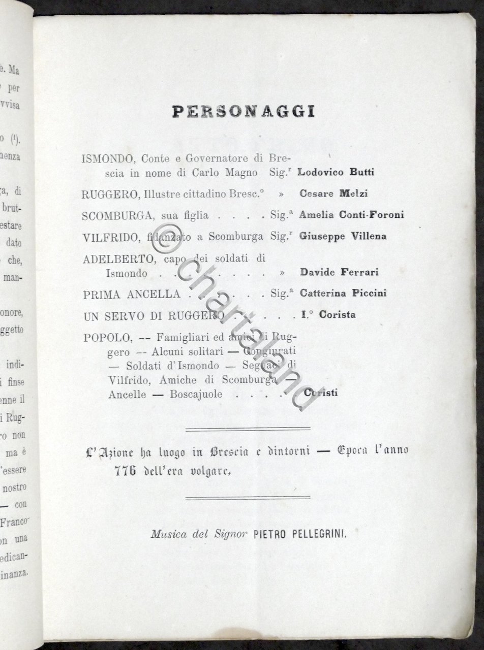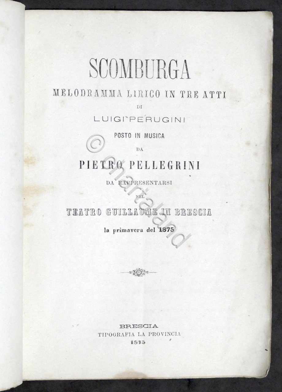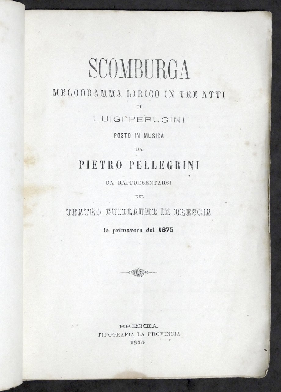 Libretto Opera - P. Pellegrini - Scomburga - Teatro Brescia 1875 Prima Rappr.