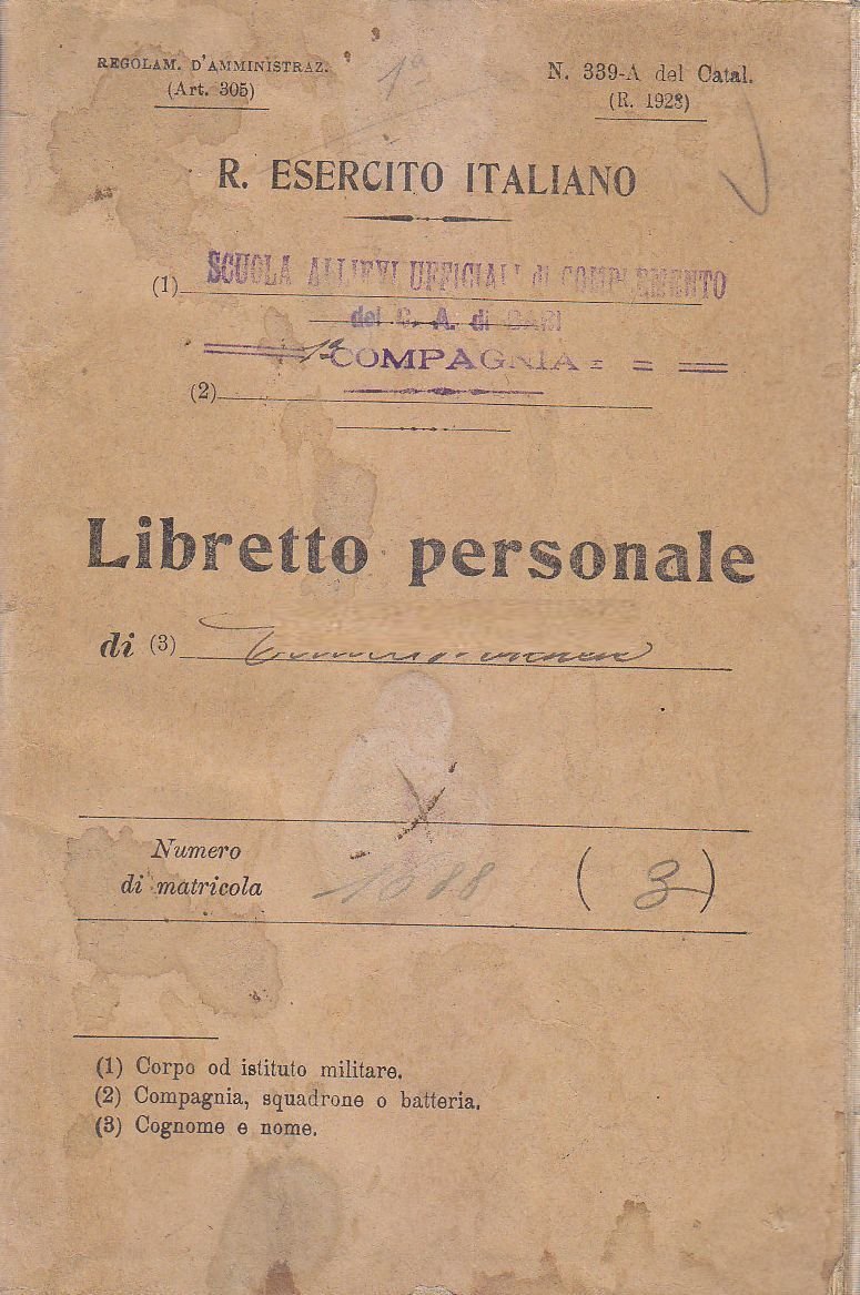 Regio esercito italiano scuola allievi ufficiali di complemento del C.A. di Bari.
