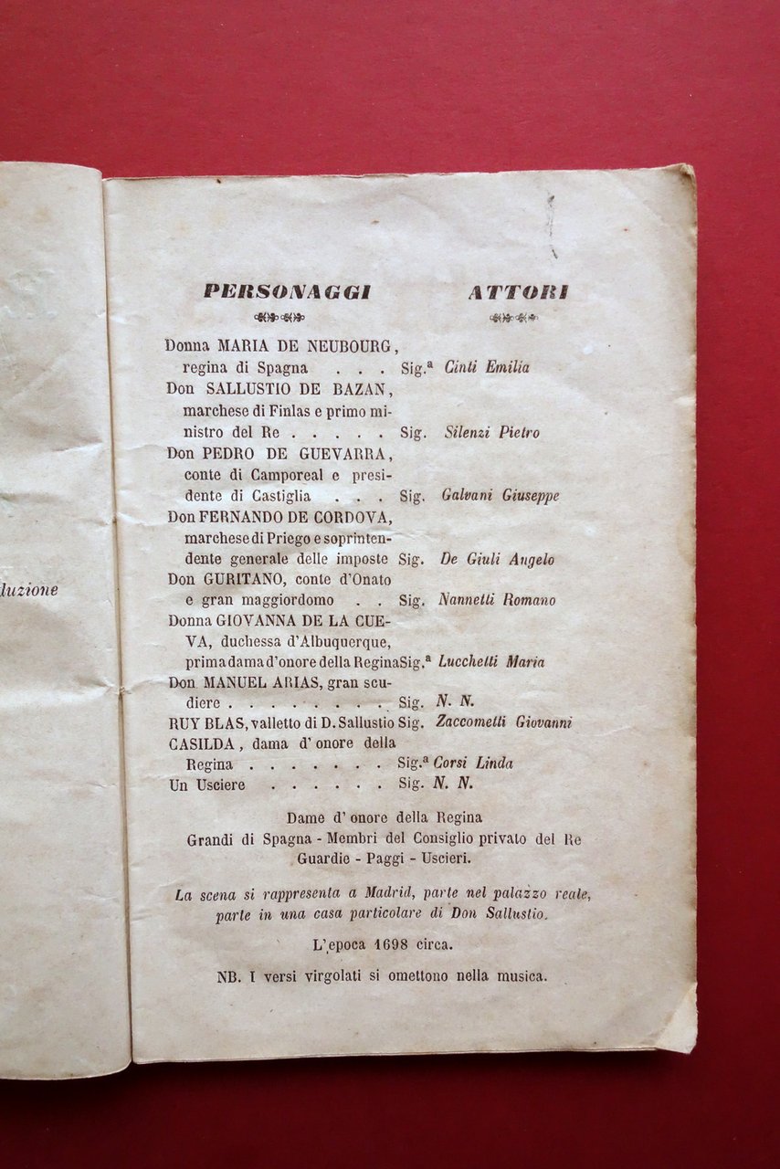 Libretto Ruy Blas Dramma Lirico F. Marchetti Teatro Comunale Bologna 1871