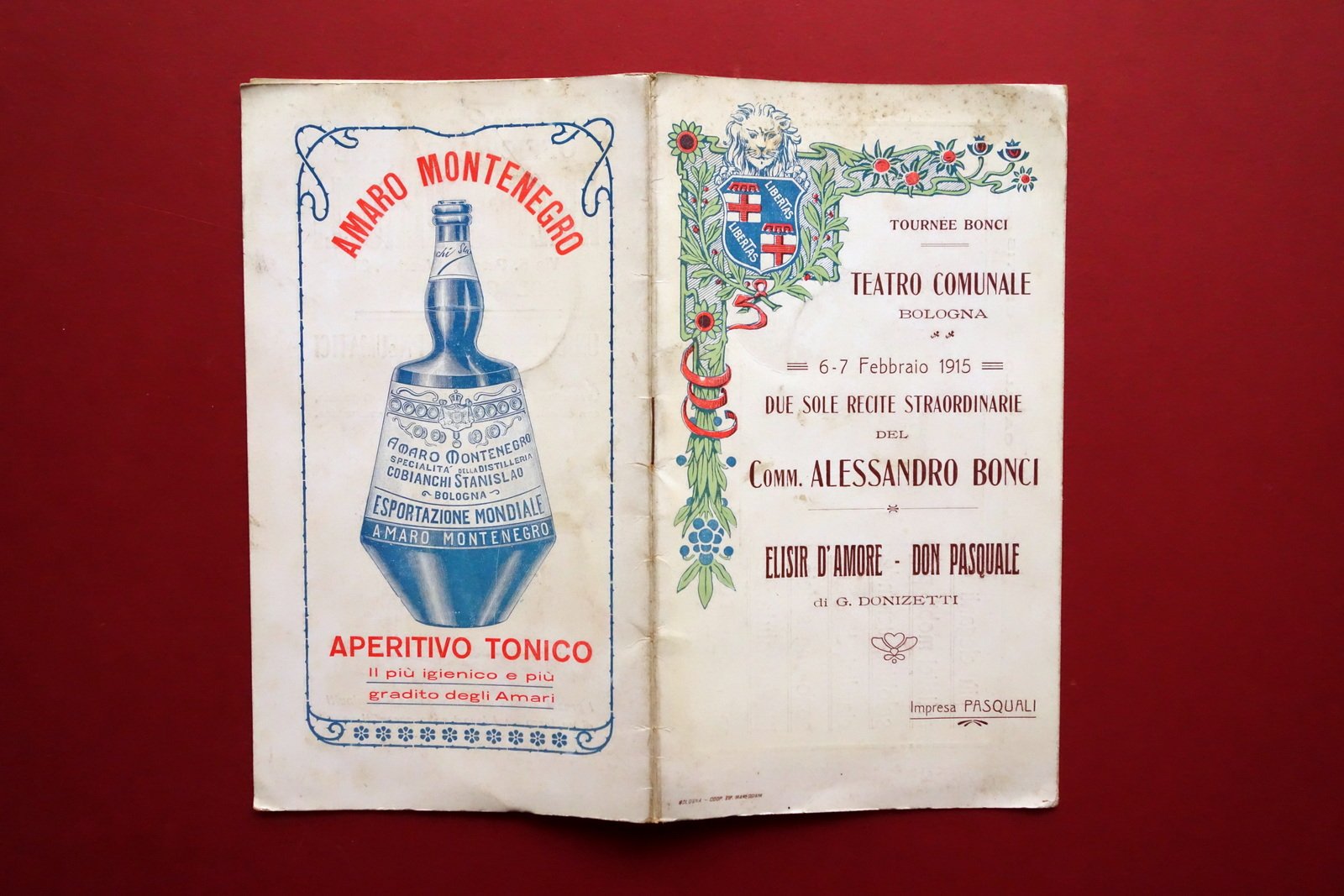 Libretto Tournee Bonci Teatro Comunale Bologna Elisir d'Amore Don Pasquale 1915