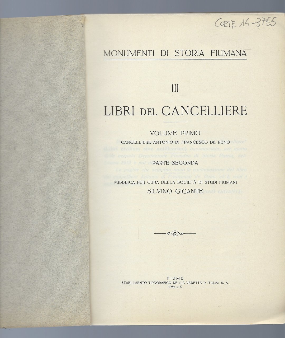 Pubblica per cura della Deputazione di Storia Patria Silvino Gigante.