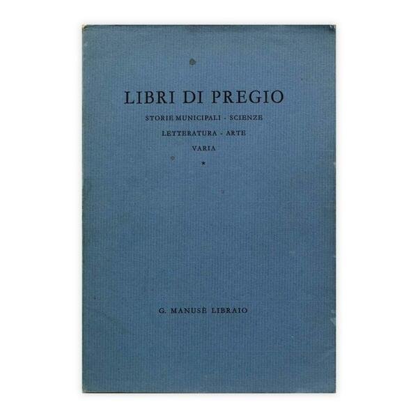 Autore: Aa. Vv. Titolo: Libri di Pregio - Storie Municipali - Letteratura - Arte Varia Edizione: G. Manusè Libraio 1969 Dimensioni: 14x 20 cm c.a. Pagine: 211 Copertina: Brossura con alette Condizioni: Ottime come da foto