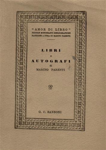 Firenze, G.C.Sansoni 1952, cm.12x16, pp.64, 4 ill.in bn.nt., brossura intonso, cop.ornata. Eccellente esempl. Coll.Amor di Libro,X. Edizione numerata in 333 esemplari. STATO: DA COLLEZIONE, COME NUOVO. NOTE: fondo di magazzino.