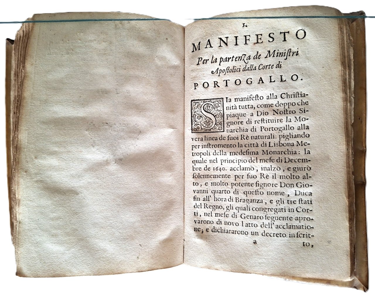 Due Tomi in un volume, Historia della disunione del regno di Portogallo + Manifesto per la partenza de ministri apostolici della corte di Portogallo