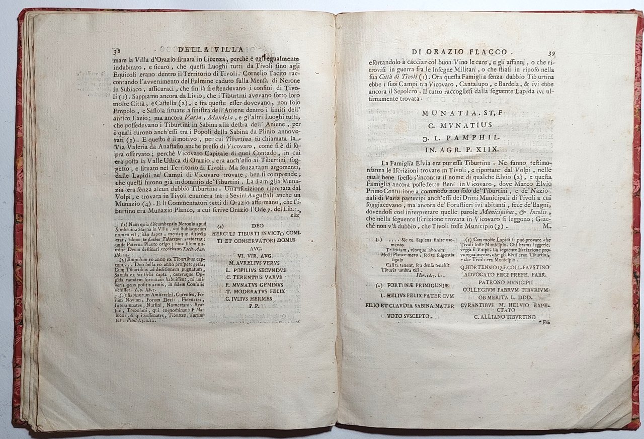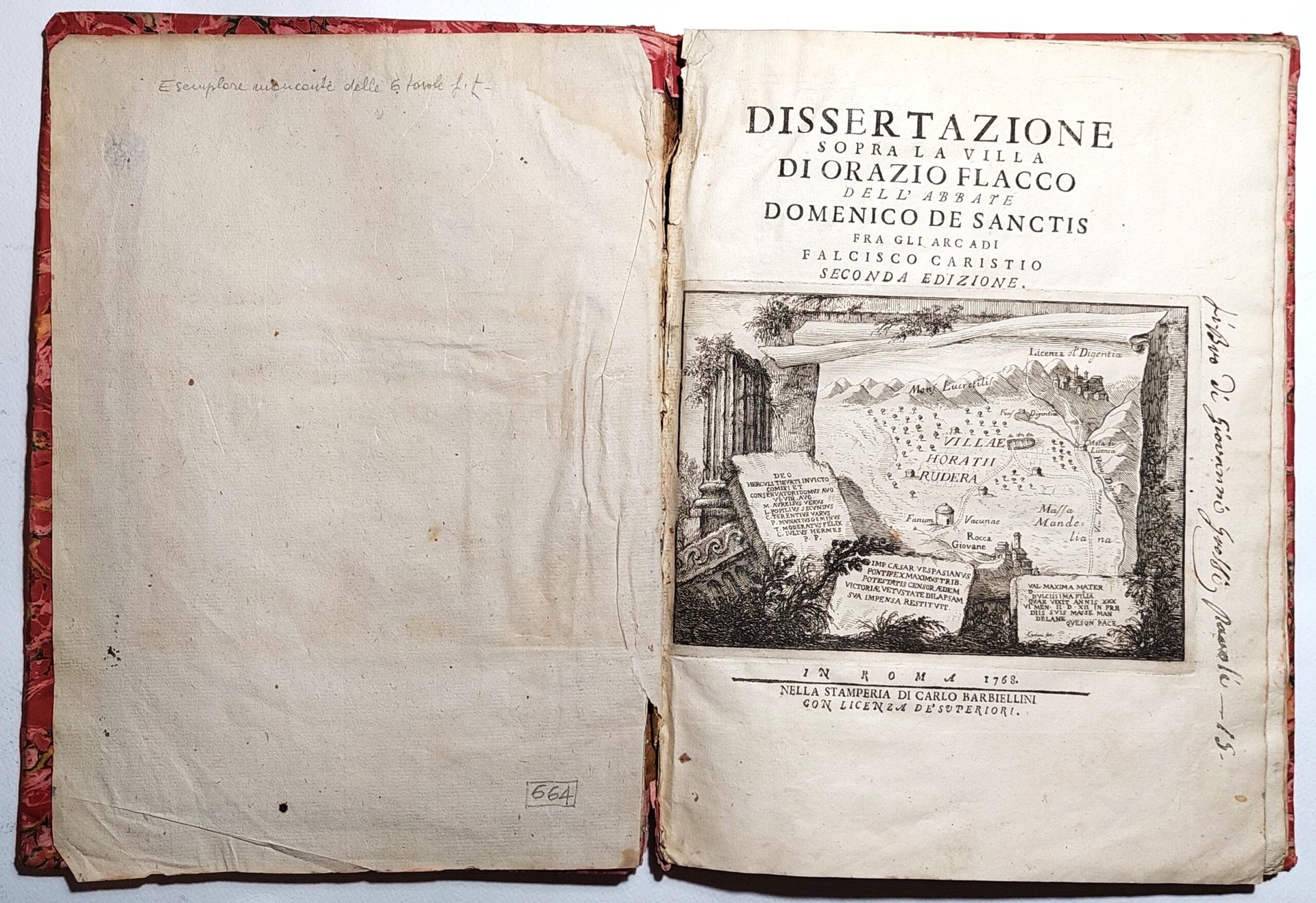 Libro antico settecentina Dissertazione sopra la villa di Orazio Flacco 1768