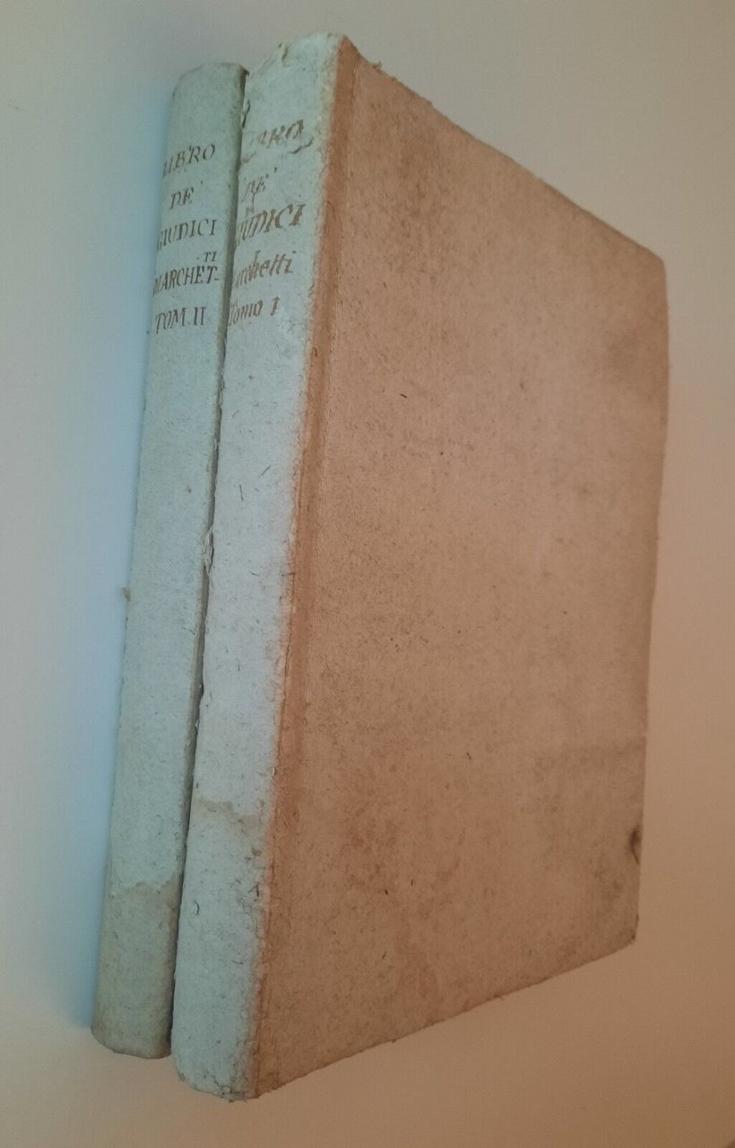 LIBRO DI SAMUELE SECONDO NOI LIBRO 1 E 2 DE' RE ESPOSTO IN SAGRE LEZIONI G. MARCHETTI DALLE STAMPE DI VINCENZO POGGIOLI 1804 1805In 4°, 4 volumi, pag. [2] XVI 451 + [2] 444 + [2] 349 + [2] 368, legatura in cartonato d'attesa con titolo ad inchiostro al dorso, incisione al frontespizio.Tenui macchie alle sguardie e alle prime pagine bianche.tenui macchie al margine interno ddel 4° volume.