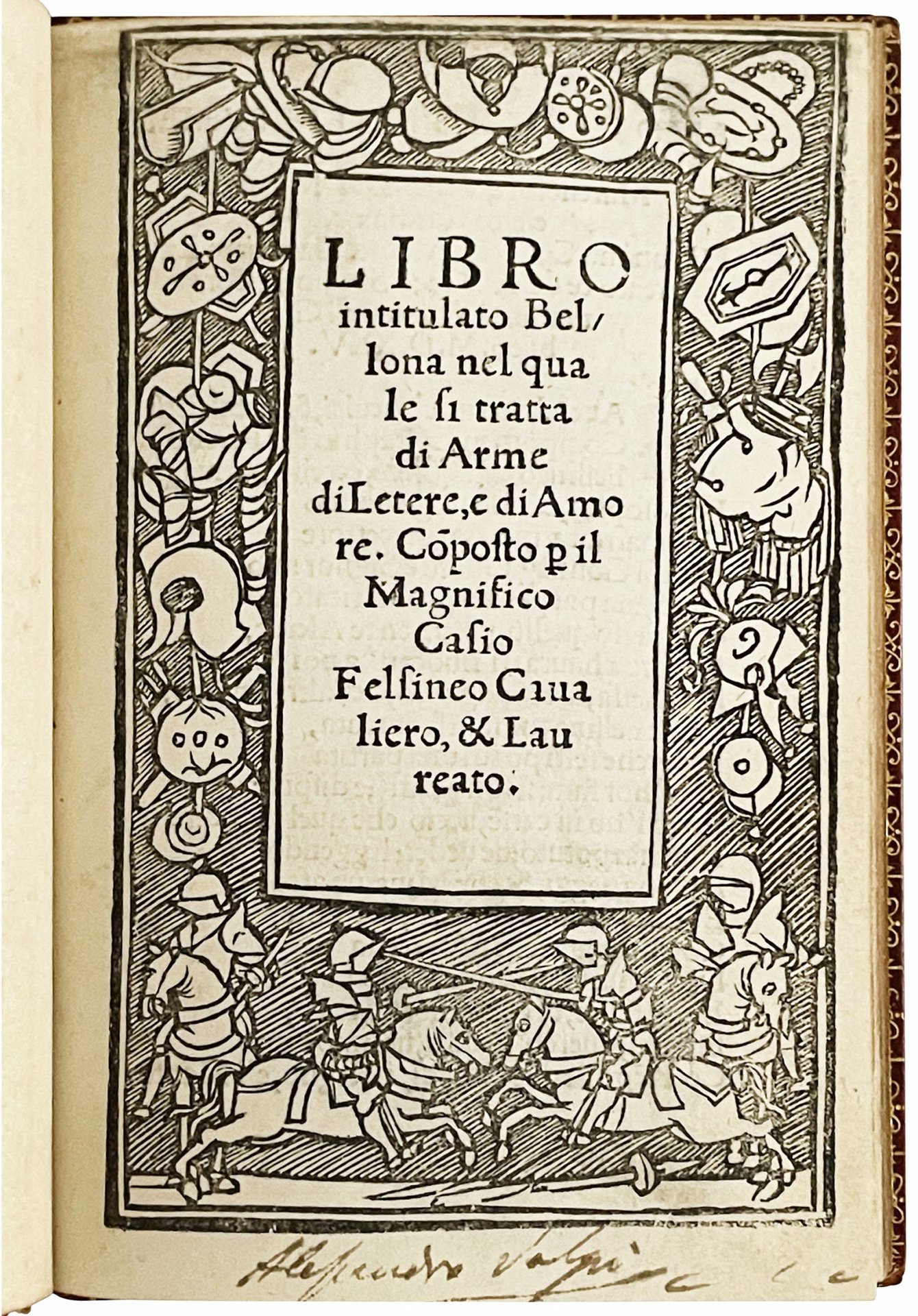 Libro intitulato Bellona nel quale si tratta di arme, di letere, e di amore. Composto per il magnifico Casio Felsineo cavaliero & laureato
