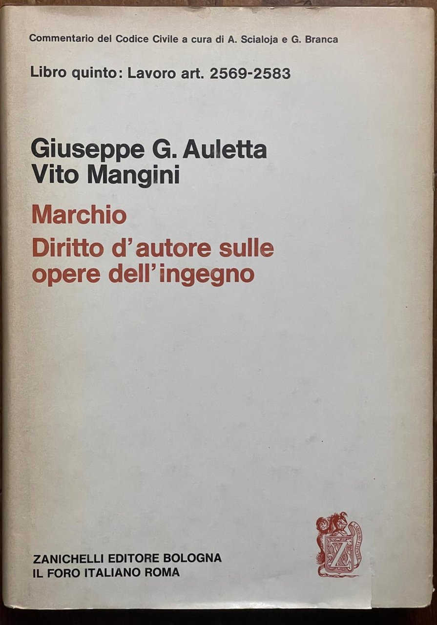 Libro quinto: Lavoro art. 2569-2583 MARCHIO - DIRITTO D'AUTORE SULLE OPERE DELL'INGEGNO