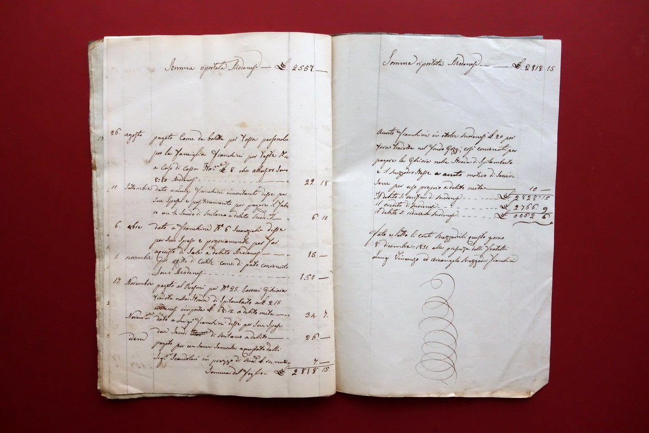 Libro Registro dei Conti Mezzadrili Debito Franchini Modena 1846-51 Manoscritto
