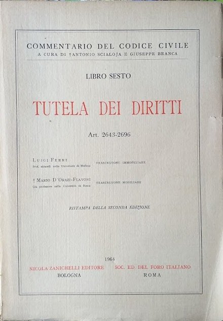 Libro Sesto: Tutela dei Diritti, art. 2643-2696 | Libri antichi e moderni | Luigi Ferri - Mario D''Orazi Flavoni, ,Luigi Ferri - Mario D''Orazi Flavoni